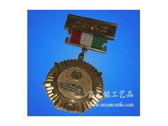 校徽、胸章、胸针、钥匙扣、领带夹、旗帜徽章、奖章、运动章、标牌、铭牌、证章、袖扣、金属商标等各种金属工艺品。
